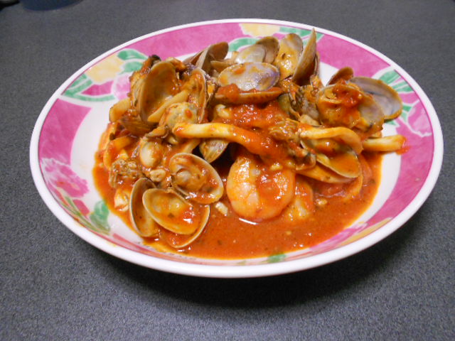 魚介類の漁師風トマトソース煮を作ってみました。