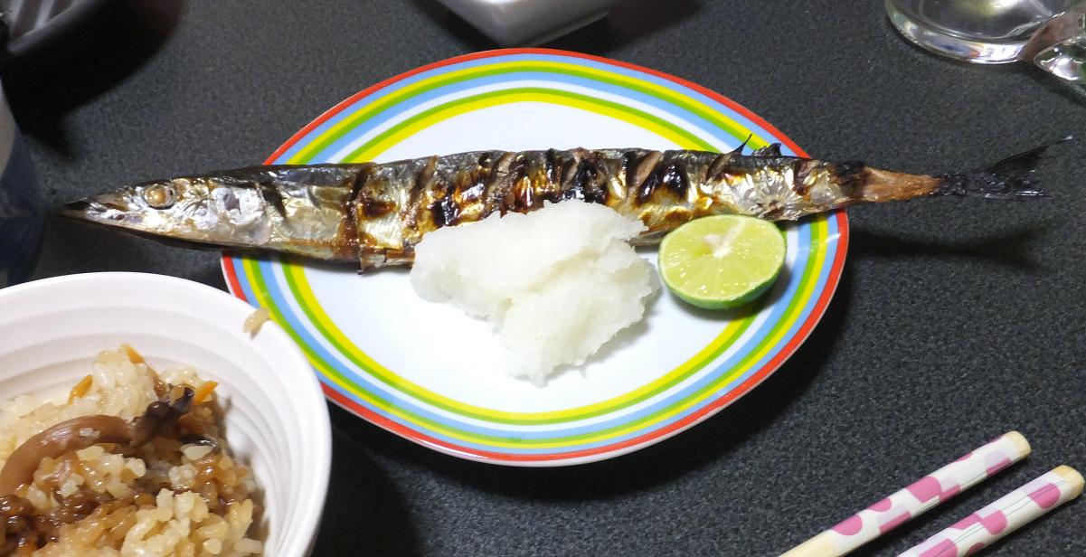1尾100円のさんまを買ってきました。30cm。切らなくてもそのまま焼ける~。