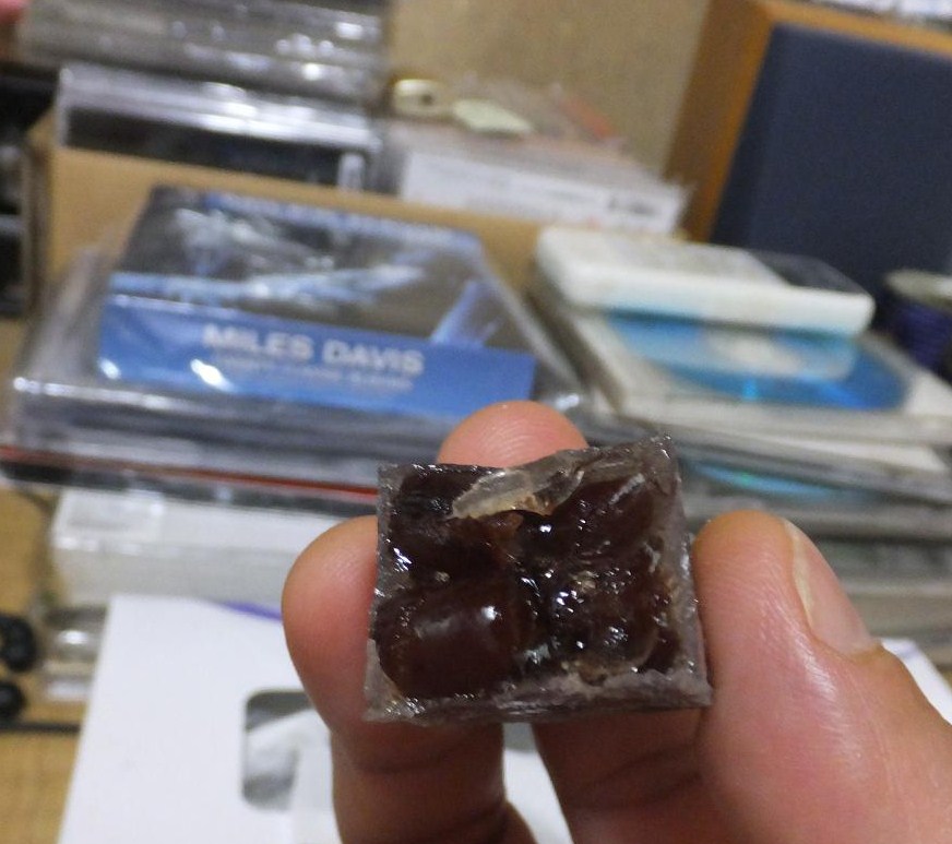 マイルスを聴きながら薄小倉を食べるた~は幸せそうです。(た~の指登場)
