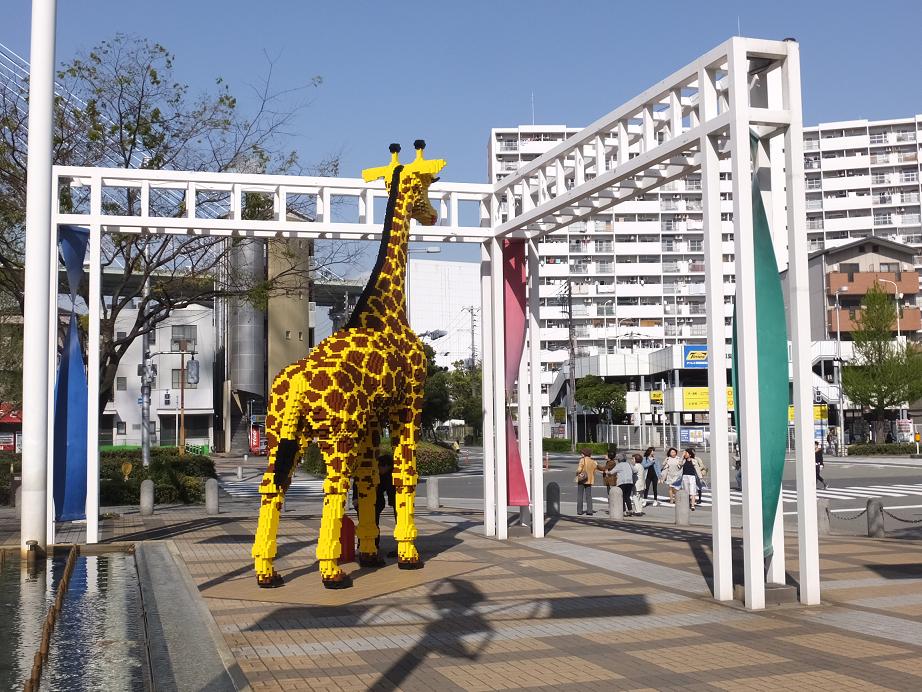 広場にキリンがいました。
