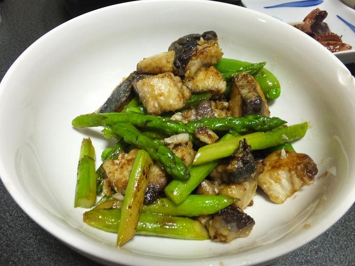 家でも作った、鰆とアスパラのバター醬油炒め