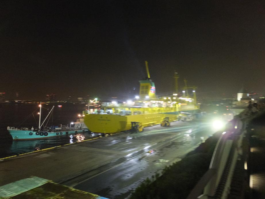 一般客より先に乗船口へ案内されました。普段通れない貨物の積み下ろし場所を通って行きます。