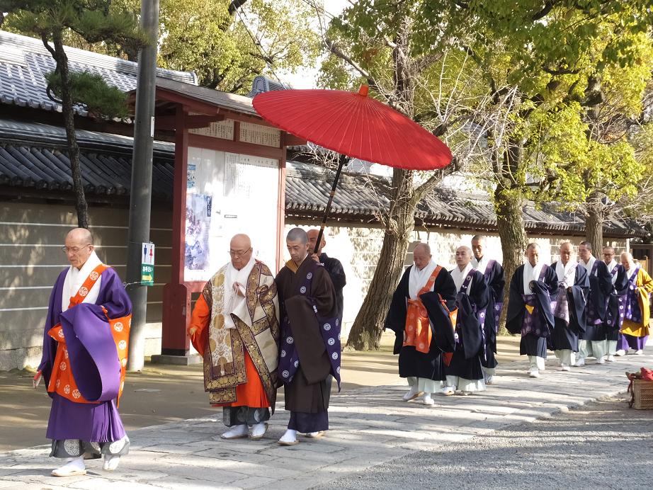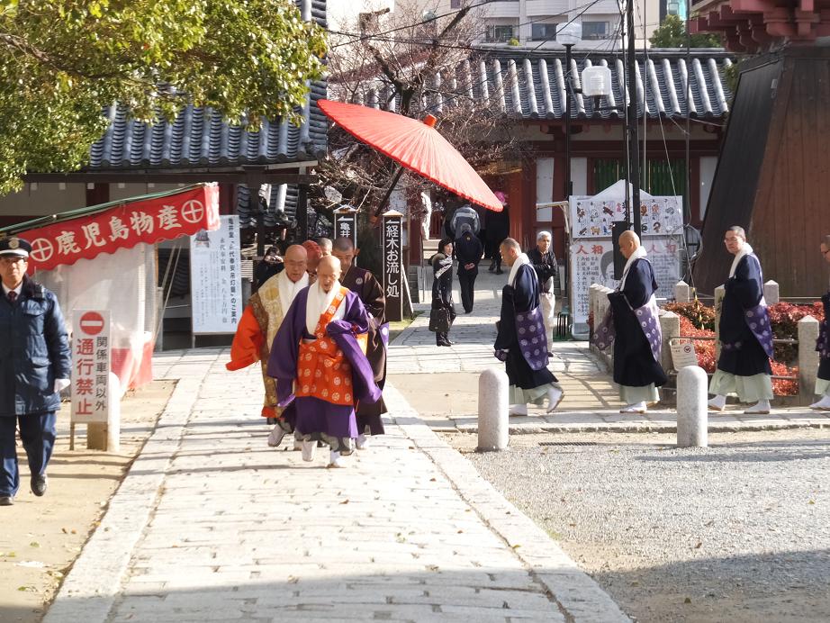 日本庭園を後にしたとき、一陣の砂ぼこりが参道を舞い上がり、(ぎゃ~!着物が汚れる!)とワサワサしてたら向うからお坊さんの行列がやって来ました。
