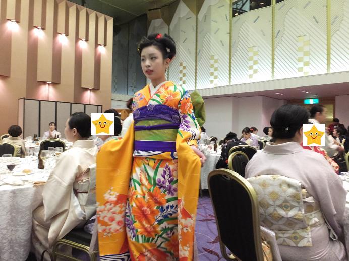 宴会場はこんな感じです。全員が着物です。総勢300人位かな。