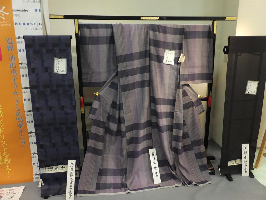 米沢市長賞をもらったお着物。山形県知事賞の帯も並んでます。