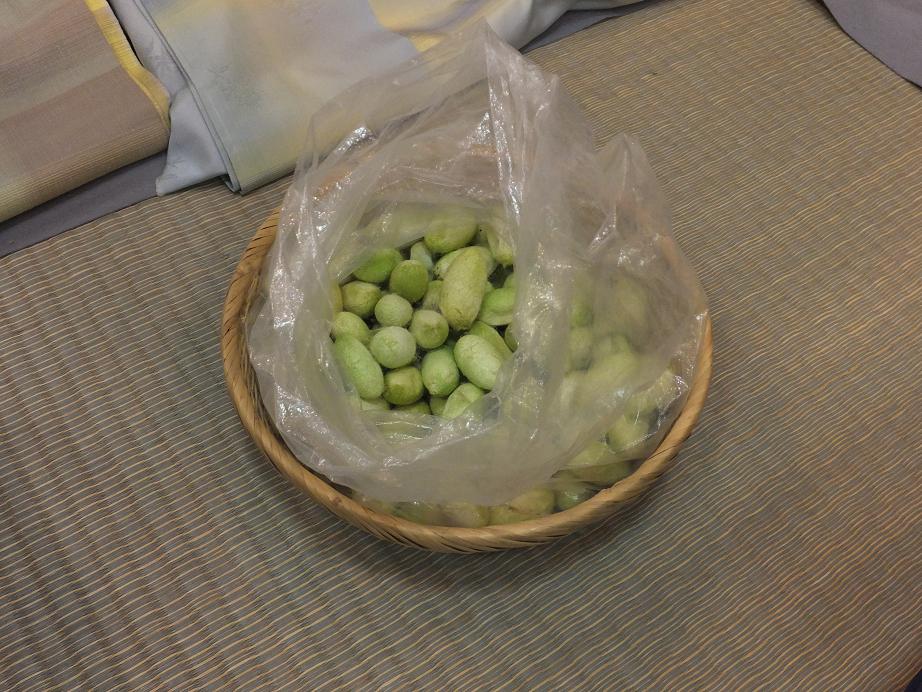 振るとカラカラと音がします。中にお蚕さんがいるのです。