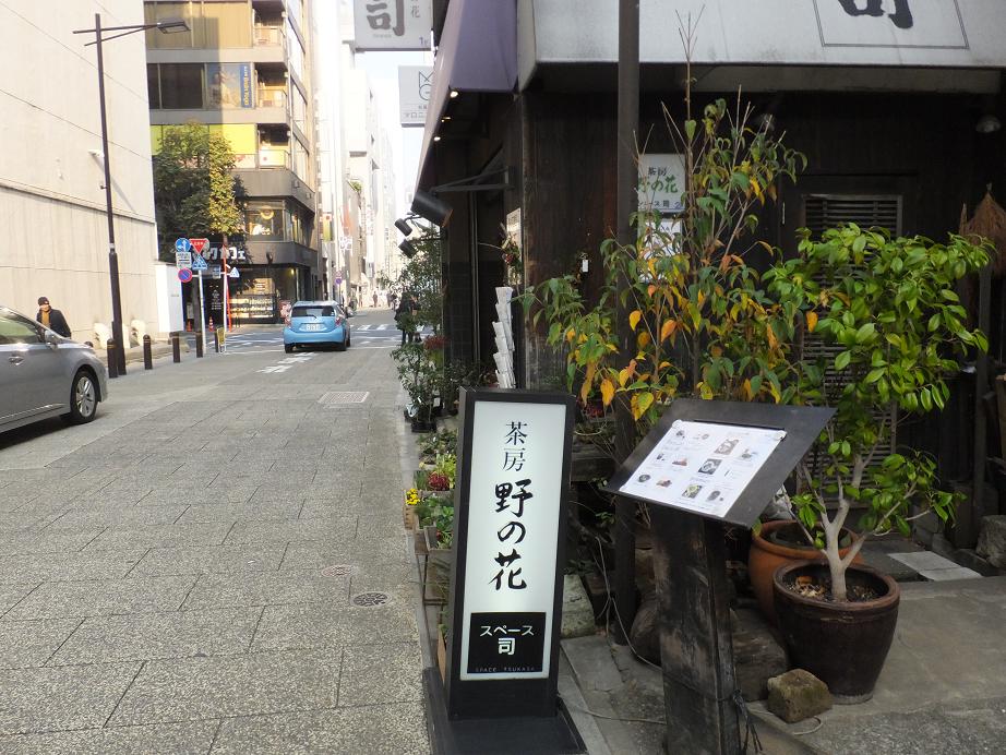 百貨店松屋の裏の花屋さんの2階です。花屋は同じ並びに日比谷花壇もあるので間違えそうですが、もうちょっと奥にありました。