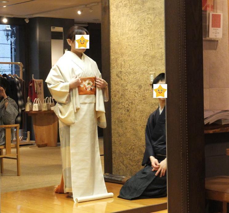 すっごいお洒落で渋いオジサマが仕立てた着物を取りに来てました。さすが銀座、男性のお客さんもいるのです。