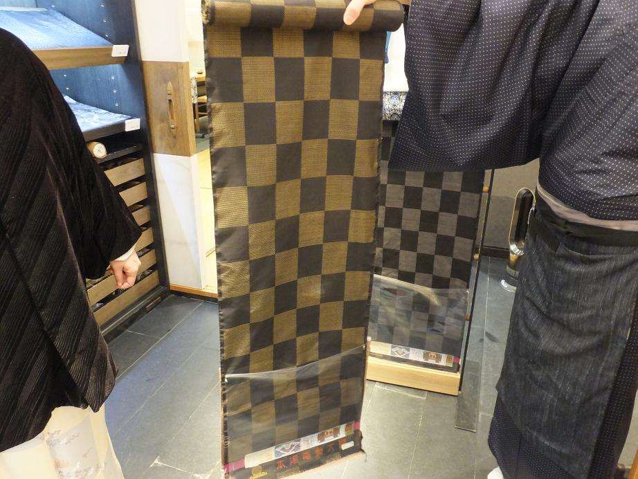 もとじは日本で初めて男性専門のきもの店も出してるのです。「私も最初は反物で見せられた時にはう~ん好みじゃないなと思っても、いざあててみたら全然違うんだよね。」と言ってました。