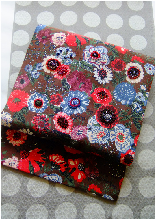 売り場の一角に可愛い着物と帯を発見。原宿の「kosode 小袖」というお店が期間限定で出店してました。ふたりともこの赤い更紗帯にくぎ付け。