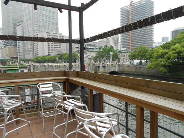 中之島の川沿いにお洒落なテラス席が並んでます。