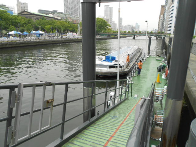 去年、ここで天神祭の船渡御(ふなとぎょ)を見物しました。