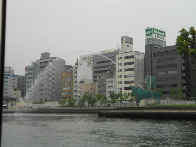 放水で歓迎?中之島公園の噴水 剣先噴水と言うそうです。