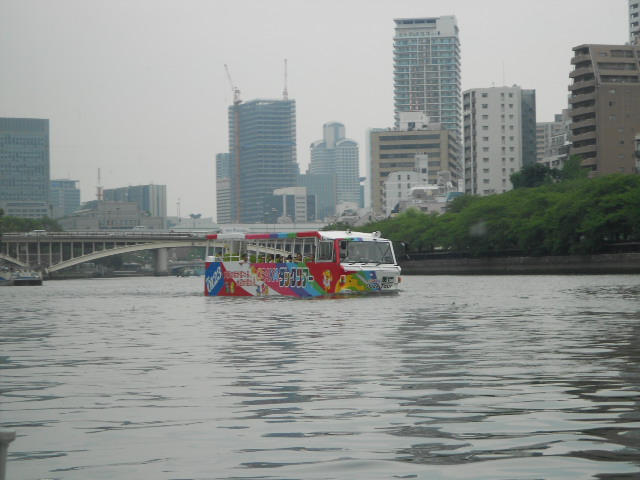 調べたところ 本当に水陸両用車でした。すごい!「ダックツアー」と書いてます。