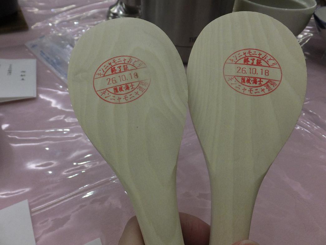 しゃもじを使って踊るのです。無事踊れたので修了証のスタンプを押してもらいました。