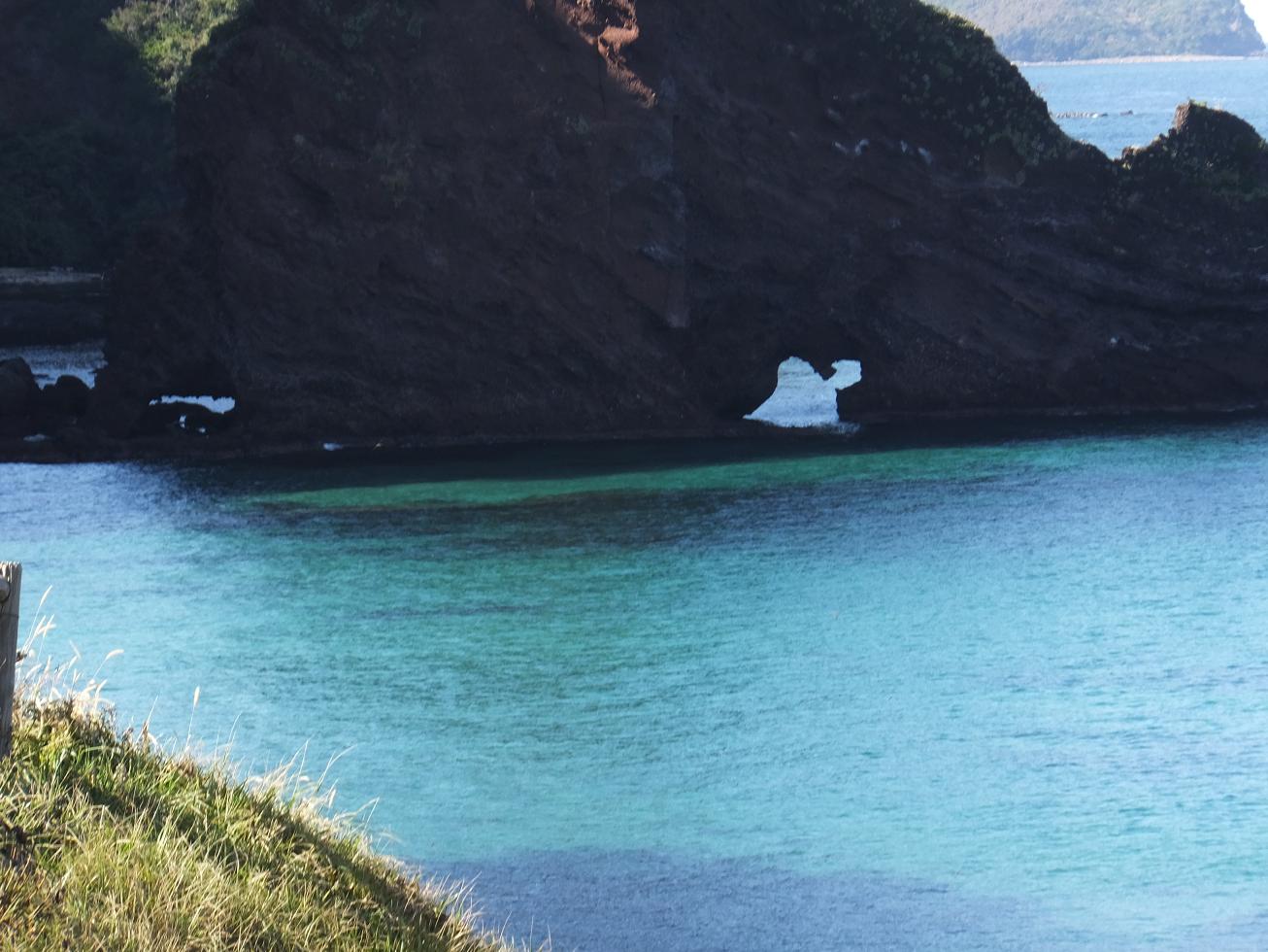 屏風岩の真ん中に穴があいているのでハート岩とも呼ばれてるそうです。先の方に歩いて角度を変えるとハート型に見えるそうです。