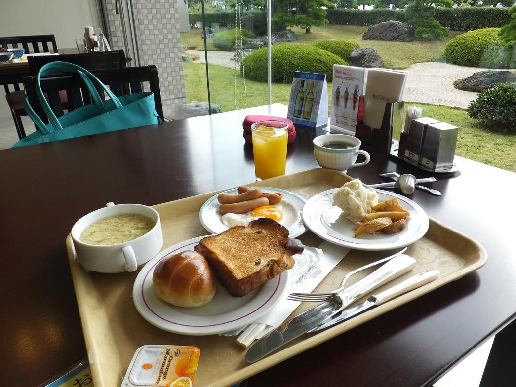 きれいな庭を見ながら朝食です。た~が見たら怒られそう。