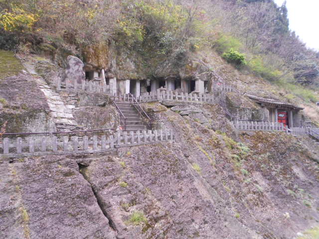 岩山を掘った3つの石窟の中に3仏と501体の羅漢坐像が安置されているそうですが、中は見れませんでした。