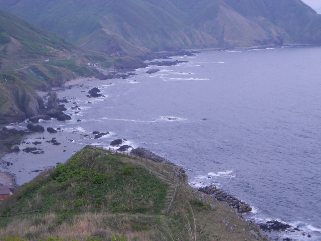 これが津軽半島の北端 龍飛埼です。右端にうっすら見えるのは北海道です。