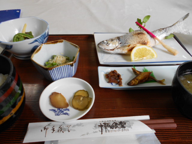 十和田食堂で名物「ヒメマス定食」です。