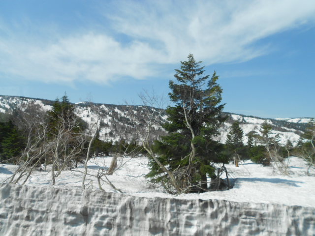 八甲田ロープウェー駅、酸ヶ湯温泉(すかゆおんせん)、蔦温泉と雪が残る山の間をクネクネ走りながらバスに揺られ2時間と少し。