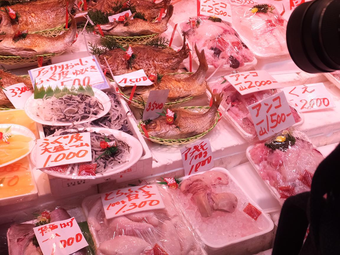 おめでたい鯛のお頭つきもたくさん並んでました。周りにはもちろんふぐ。