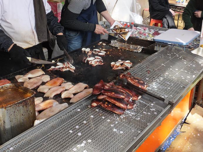 いいにおいにつられて向かうと屋台がずら~っ。 串焼きいろいろ。鮎の塩焼きもありました。