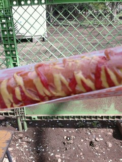 ケチャップとマスタードはお店のお兄さんにつけてもらいました。大サービス。
