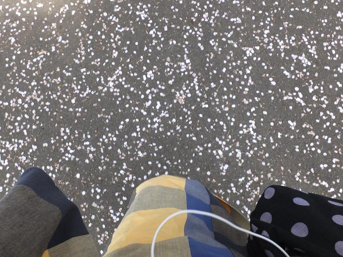 桜の下ではまだビニールシートの上で宴会してる人がたくさんいました。