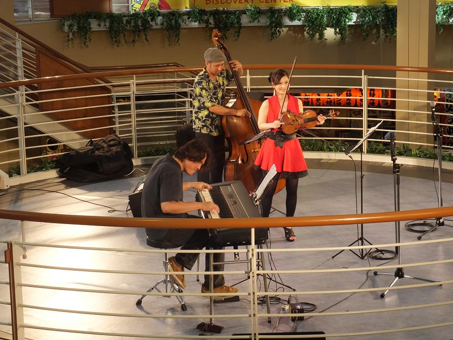 最後のライブはマーケット内でReiko Jazz Violin Trio です。