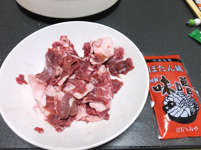 夕食は待望のぼたん鍋です。emoji