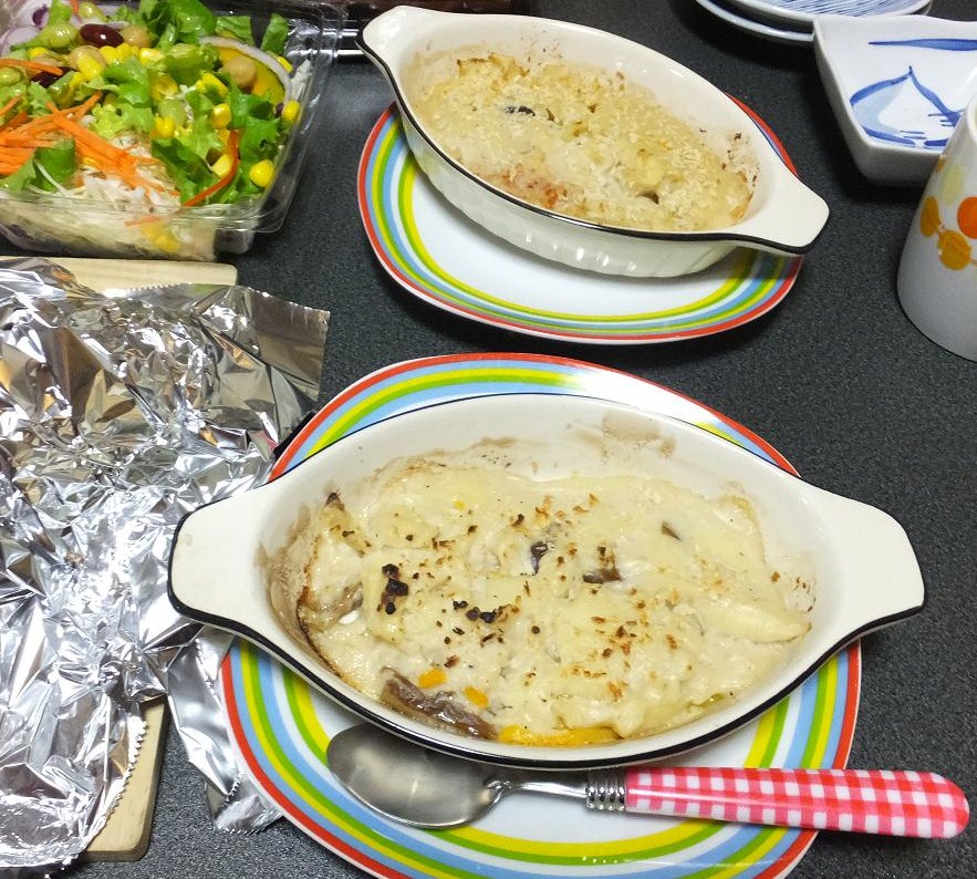 サイドメニューはた~お手製のカニグラタン。