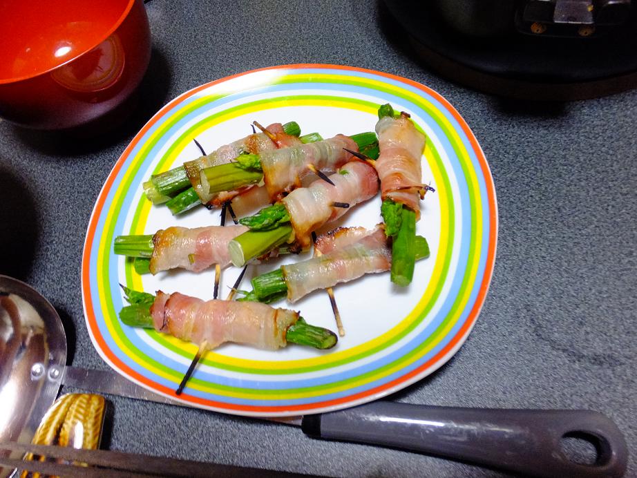 翌日の夕食はた~のリクエストのアスパラのベーコン巻き