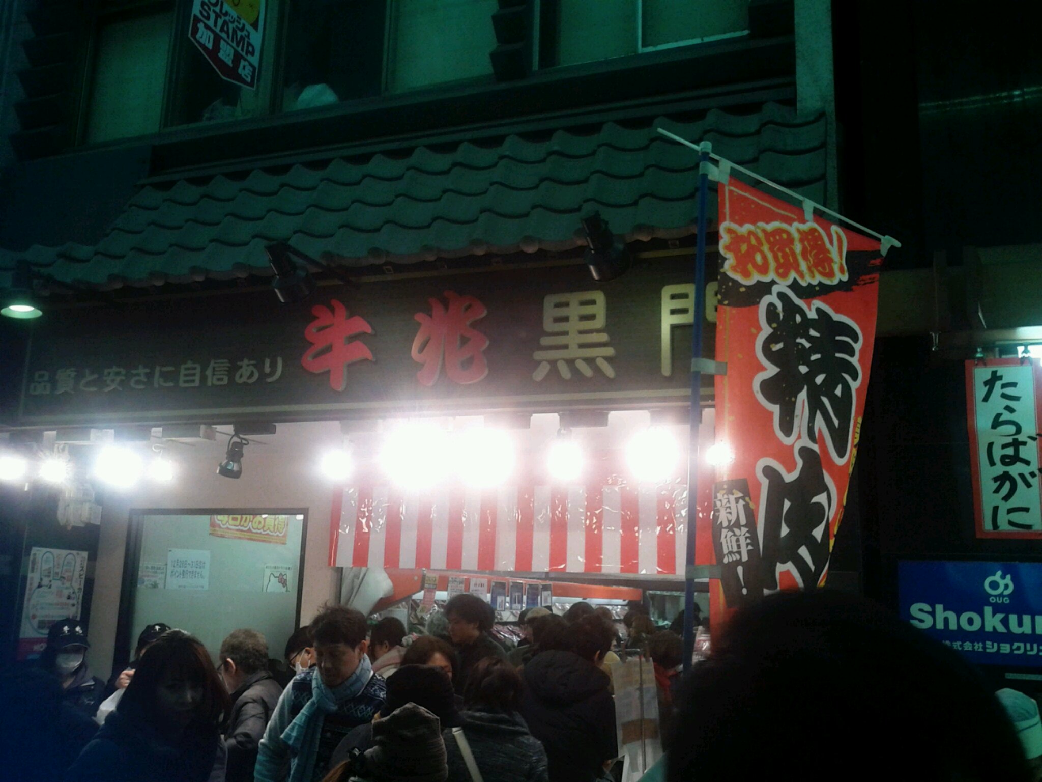 そしてお正月の鯛やら肉を探しに黒門市場へ。相変わらずすごい人でした。