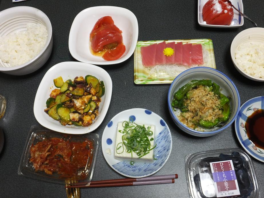 冷ややっことトマトもつけてプチ豪華な夕食。