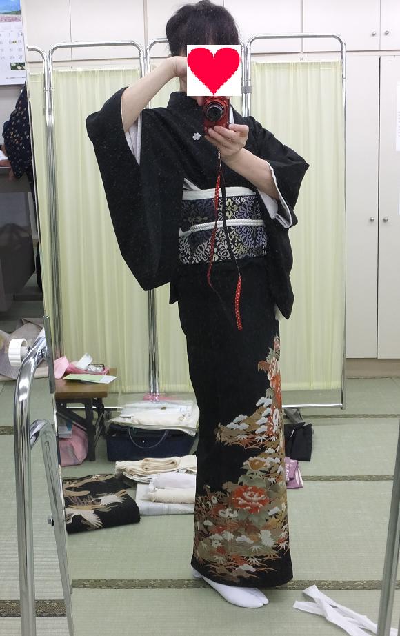 黒留袖ってなんかオバサンのイメージがあったのですが、自分で着てみるとなかなか色っぽいじゃん❤と、見惚れてしまいました。