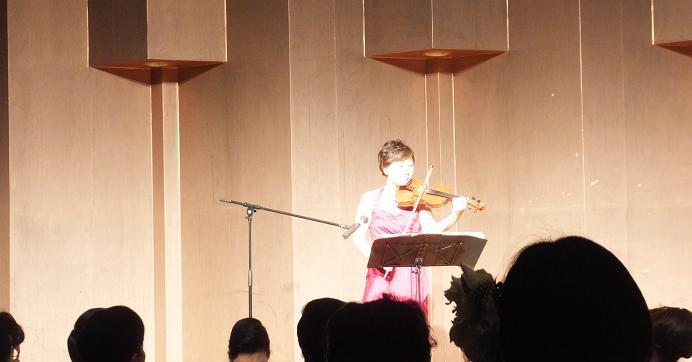 開場です。パーティーのオープニングはバイオリンの演奏です。この人着付けの先生なのです。