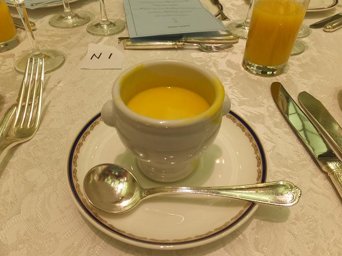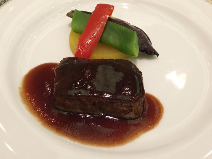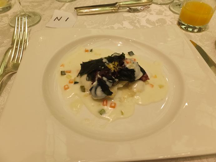 黄色いのはカレー味の大根でした。隣の先生はフランス料理なのに沢庵があると思ったそうです。