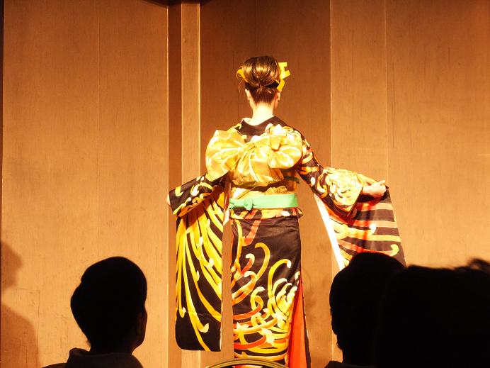 余興は各校の教授クラスの先生たちの舞いや着つけの実演です。