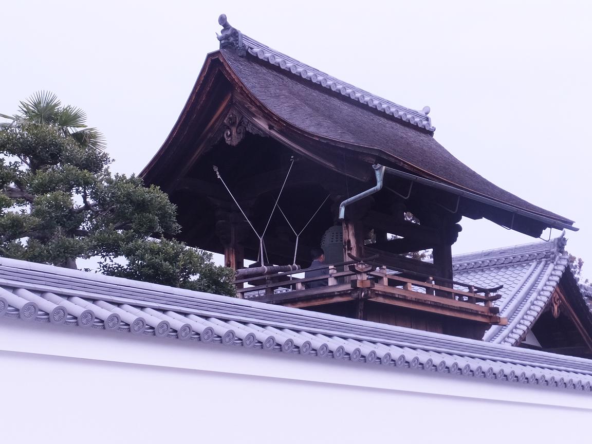 侘び寂びの庭を堪能したあと、ふと見上げると鐘つき堂が見えました。