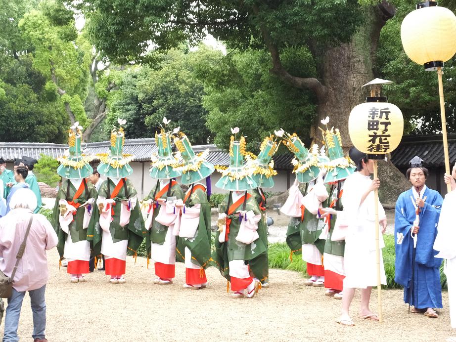 植女もお着替えが済んでます。新町花街の提灯が先頭です。