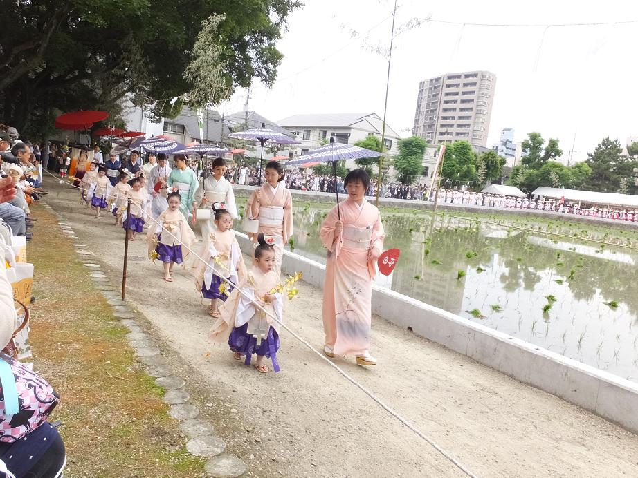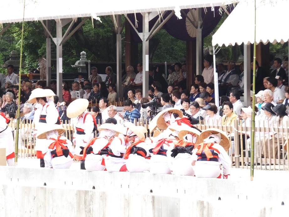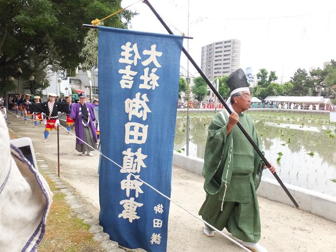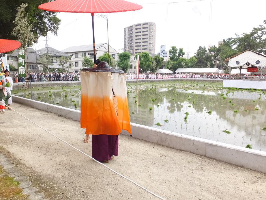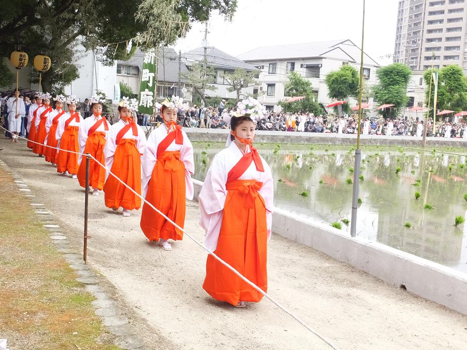 住吉大社の御田植神事は伝承によれば、神功皇后が住吉大神の御供田として神田を定め、長門国(山口県)から農業技術者として植女(うえめ)を呼び寄せたことに始まるといいます。