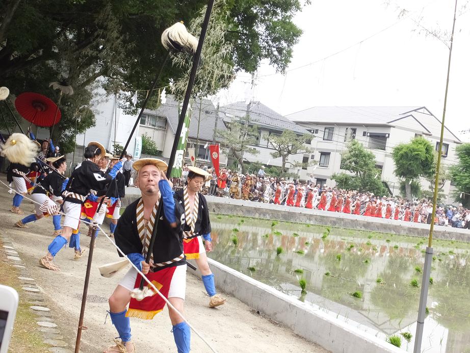 斎牛が耕してる間、行列は御田の畔を一周練り歩きます。呪術的な意味があるそうです。