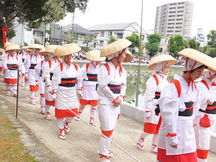 この人たちは植女(うえめ)といって稲を植える女性です。