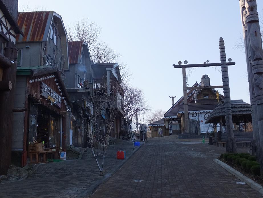 ここは完全に観光化されてるコタンでした。アメリカで言うとウエスタン村のような感じです。知らない人が見たらアイヌの人はいまだにこういう風に暮らしてると勘違いされそうです。