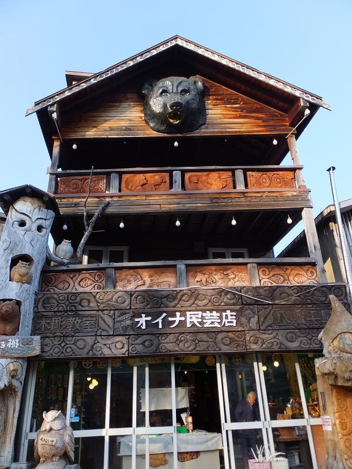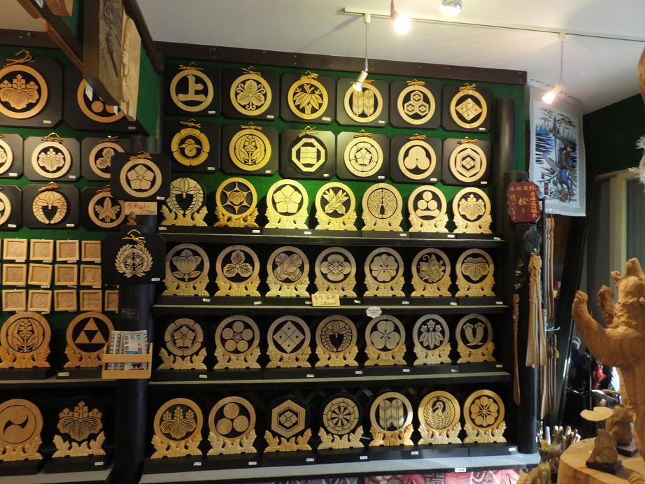 工芸品のお店が沢山あります。各店の正面の作りがどれも個性的、よーく見ると彫り物がすごい凝ってます。