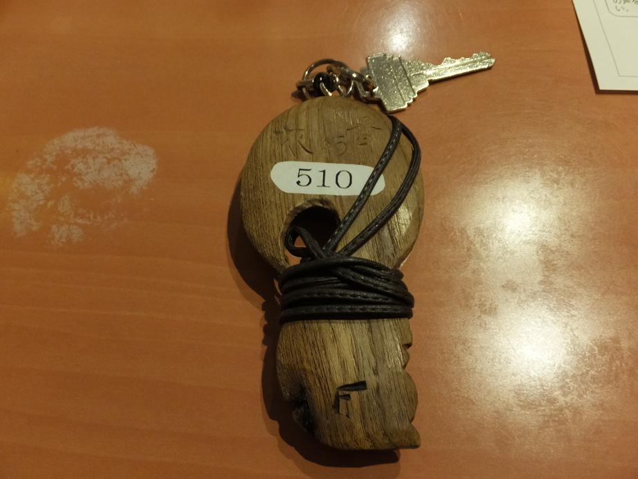 今夜の宿泊は「阿寒の森 鶴雅リゾート花ゆう香」です。ルームキ―も民芸調です。