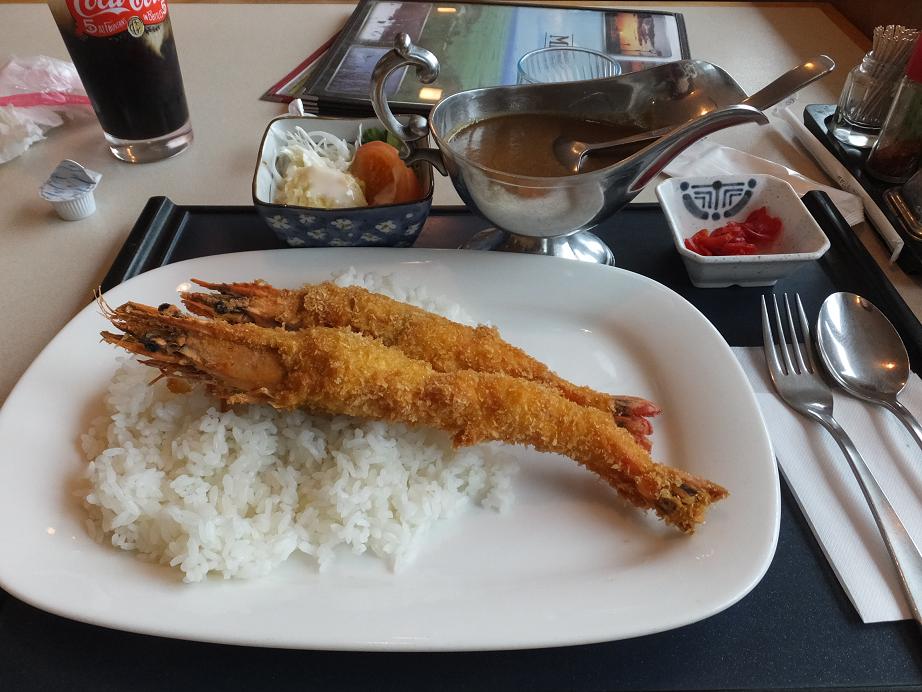 北海道最後の昼食はなぜか海老フライカレーです。エビの大きさにつられてしまいました。