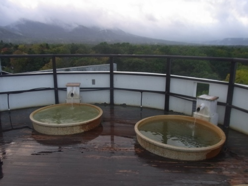 ここは露天の高温風呂。景色は見えないけど、沸き立つ湯気にライトが照らされると幽玄の世界でお風呂に入ってるようでした。湯からあがると寒いですが自由自由は「寒い~!」と叫びながら走り回って温泉を6つも堪能しました。