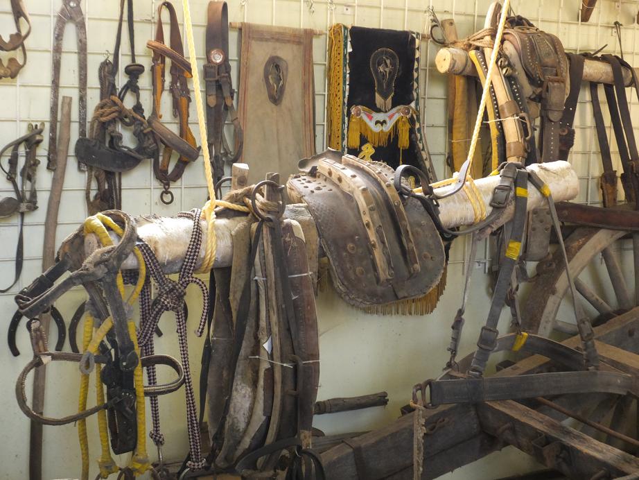 よ~く見るとものすごく古い馬具が無造作に置かれてました。自由自由はこれだけで興味津々。